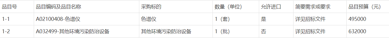 项目名称:土壤污染防治专业设备采购 采购方式:询价采购 预算金额:1127000元
