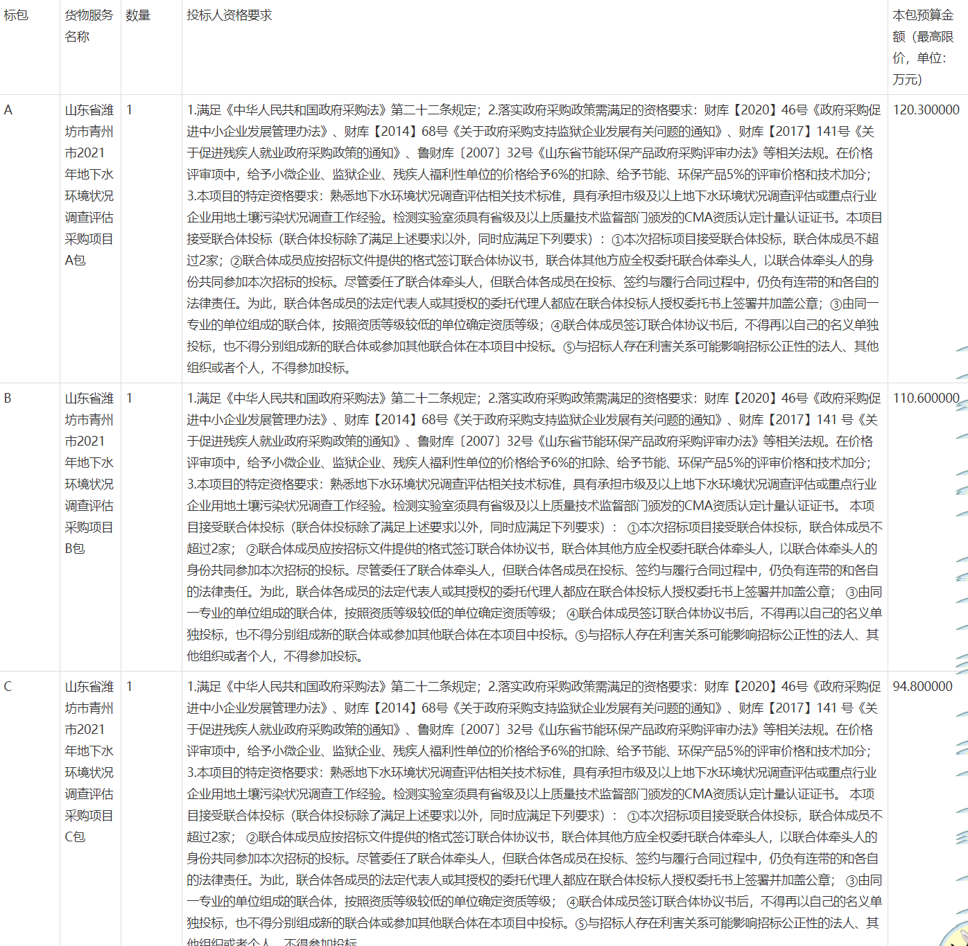 山东省潍坊市青州市2021年地下水环境状况调查评估采购项目公开招标公告