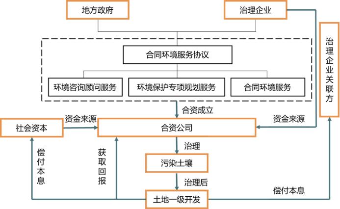 竹埠港工业区污染治理与生态开发PPP项目是采用新型环境污染治理模式的示范项目,本项目通过“土壤修复+土地流转”为核心的PPP模式,引入社会资本与地方政府通过服务协议缔结合作,成立合资公司负责区域厂房拆除、遗留污染处理、土壤治理的工作,政府方则通过修复后的土地增值收益为参与各方提供回报。
