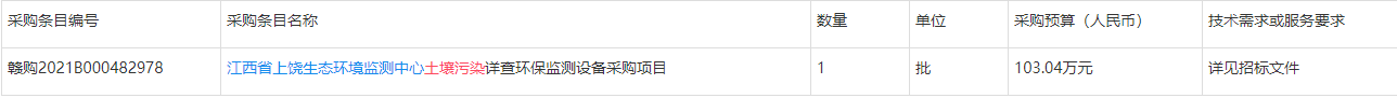 项目名称:江西省上饶生态环境监测中心土壤污染详查环保监测设备采购项目
