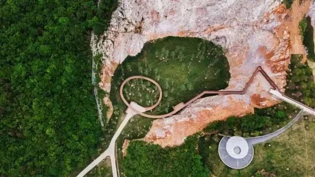 “深坑酒店”位于上海松江国家风景区佘山脚下,是一座深达80米的废弃大坑,该深坑原系采石场,经过几十年的采石,形成一个周长千米、深百米的深坑。这是人类建筑史上的奇迹,也是自然、人文、历史的集大成者。