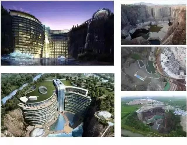 修复方案:秉承“融于自然”的设计理念,“深坑酒店”地上三层、地下17层、水下一层,并设有蹦极等娱乐项目。酒店海拔负65米,有望成为世界上人工坑内海拔最低的酒店,酒店客房沿崖壁而建。