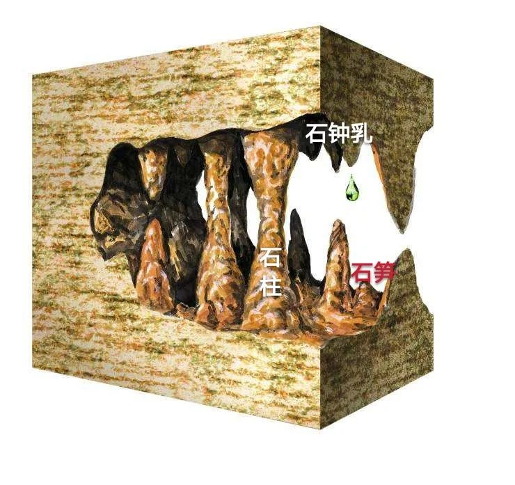 石笋、石柱和石钟乳示意图