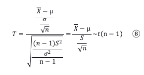 数据用什么样的检验方法进行分析,实际上取决于我们构造的统计量服从什么样的分布,只有服从这个分布,才可以利用这个分布的相关函数计算P值,如果实际上不服从这个分布,那么计算出的P值自然是不准确的。因此要证明以上问题,实际上是要证明原始数据符合正态分布时,我们构造的检验统计量符合T分布。