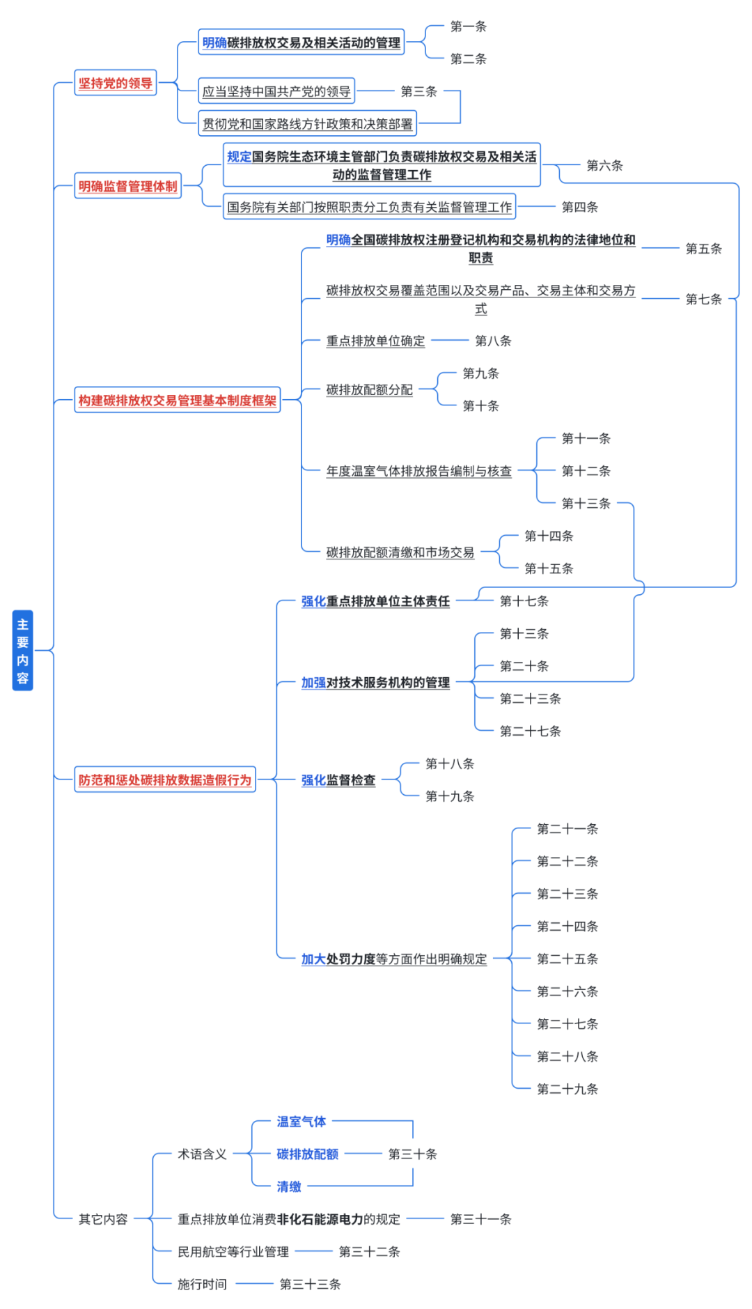 构建基本制度框架,保障碳排放权交易政策功能的发挥。《条例》共33条,主要包括以下内容。