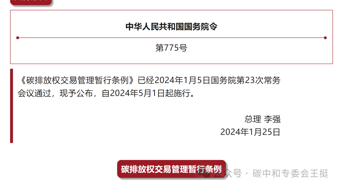 《碳排放权交易管理暂行条例》(以下简称《条例》),自