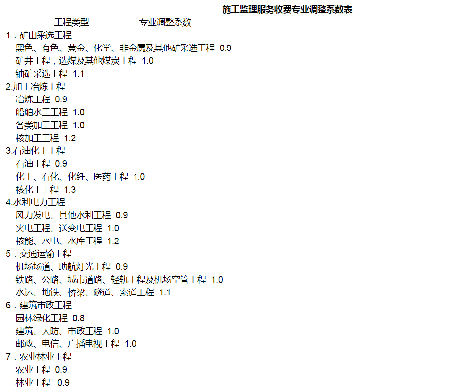 工程复杂程度调整系数:0.8~1.2(工程复杂程度具体调整系数由工程咨询机构与委托单位根据各类工程情况协商确定)。