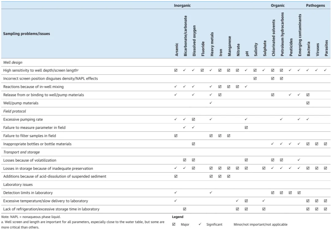 从井中抽取的水的质量代表含水层中地下水的质量的看法不一定是正确的。这种差异有两个方面,可以称为变化问题和采样问题。