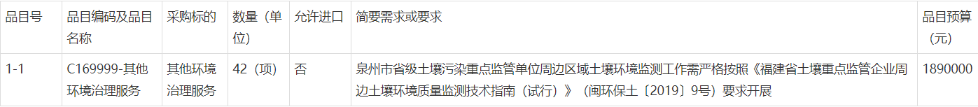 福建省土壤环境监测项目—189.0万